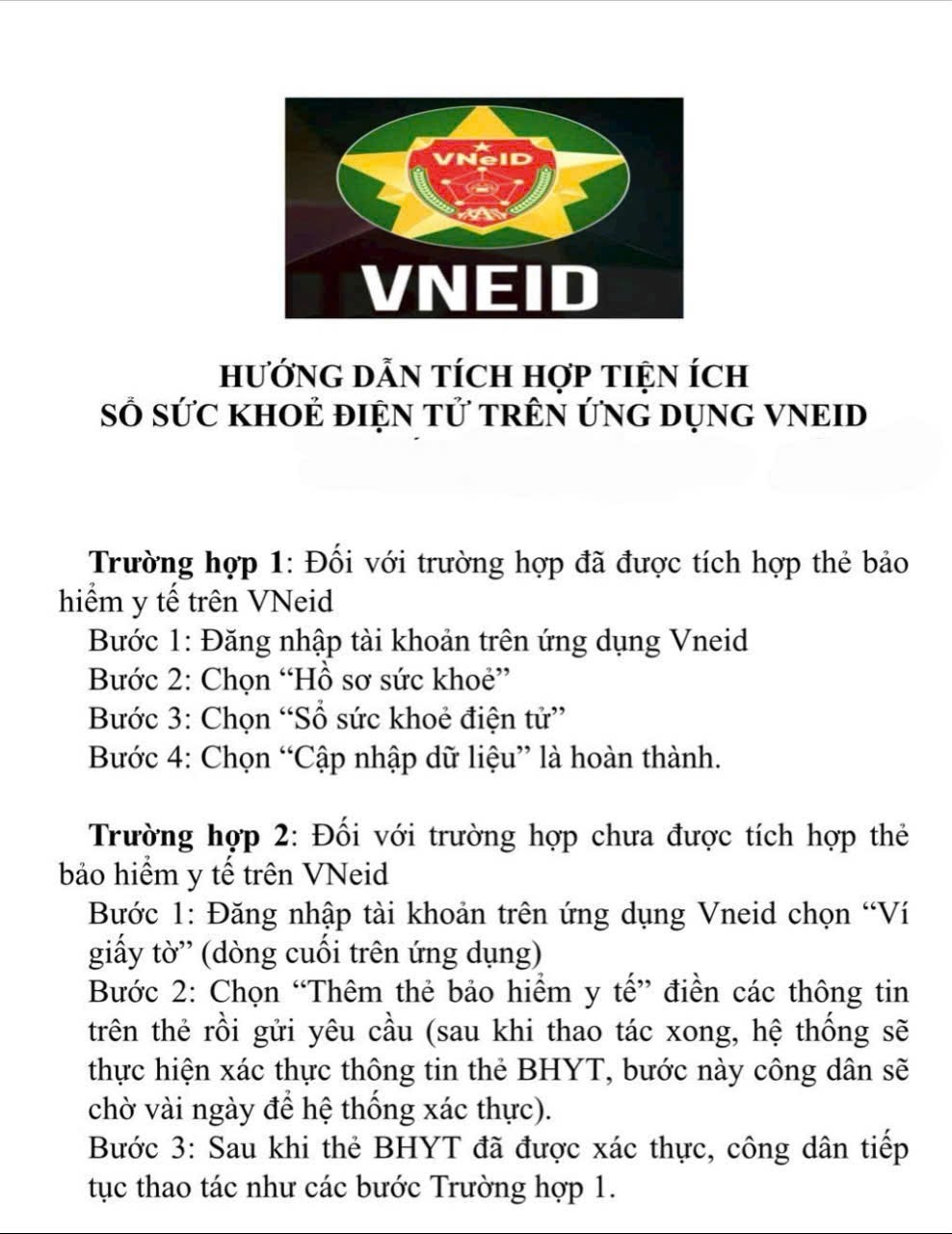 - Trường hợp 1: Đối với người đã tích hợp thẻ BHYT trên VNeID